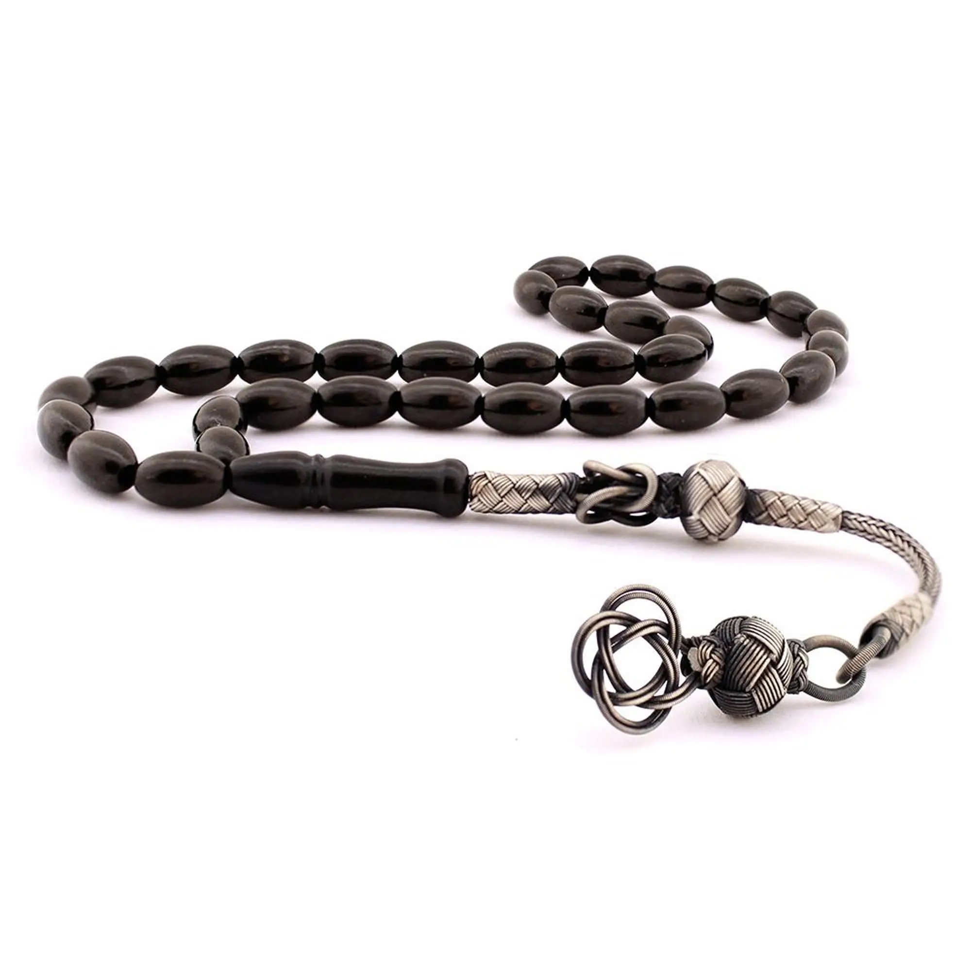 ÜRÜN ADI | 1000 Ayar Kazaz Gümüş Püsküllü Gürcistan Oltu Taşı Tesbih Tespih |