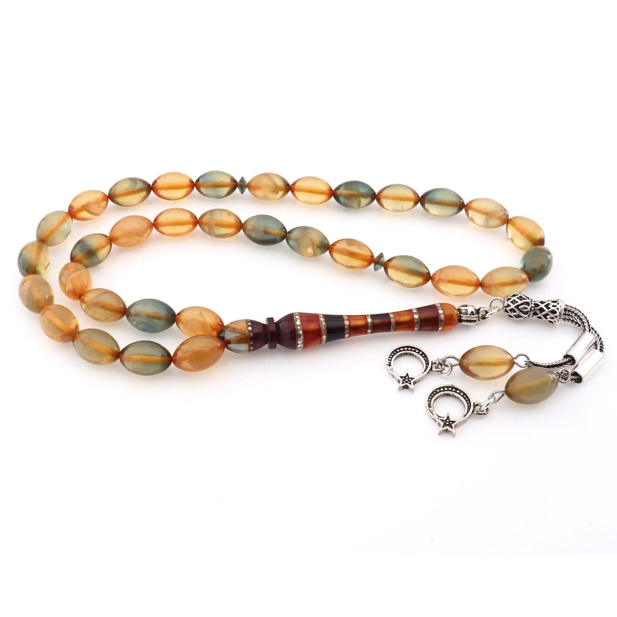 | Etiketler | 925 Ayar Gümüş Püsküllü Arpa Kesim Hareli Sıkma Kehribar Tesbih |