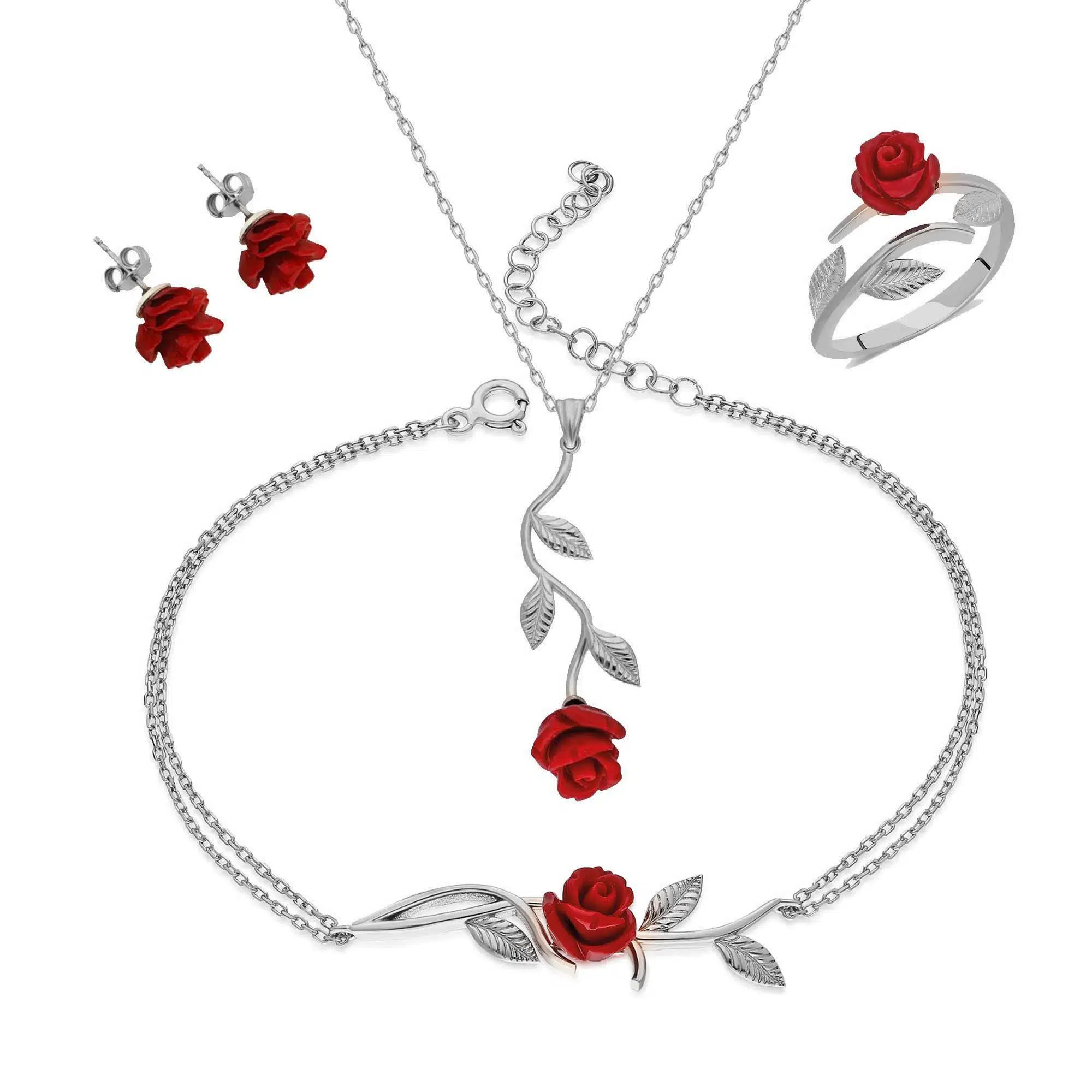 Gümüş Bileklik ,Kırmızı Gül Bileklik