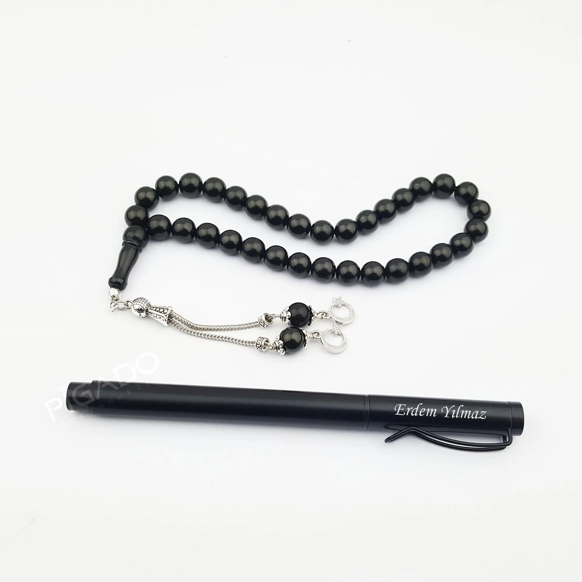 ÜRÜN ADI | İsme Kişiye Özel Roller Kalem ve Ayyıldız Püsküllü Oltu Tesbih Seti |