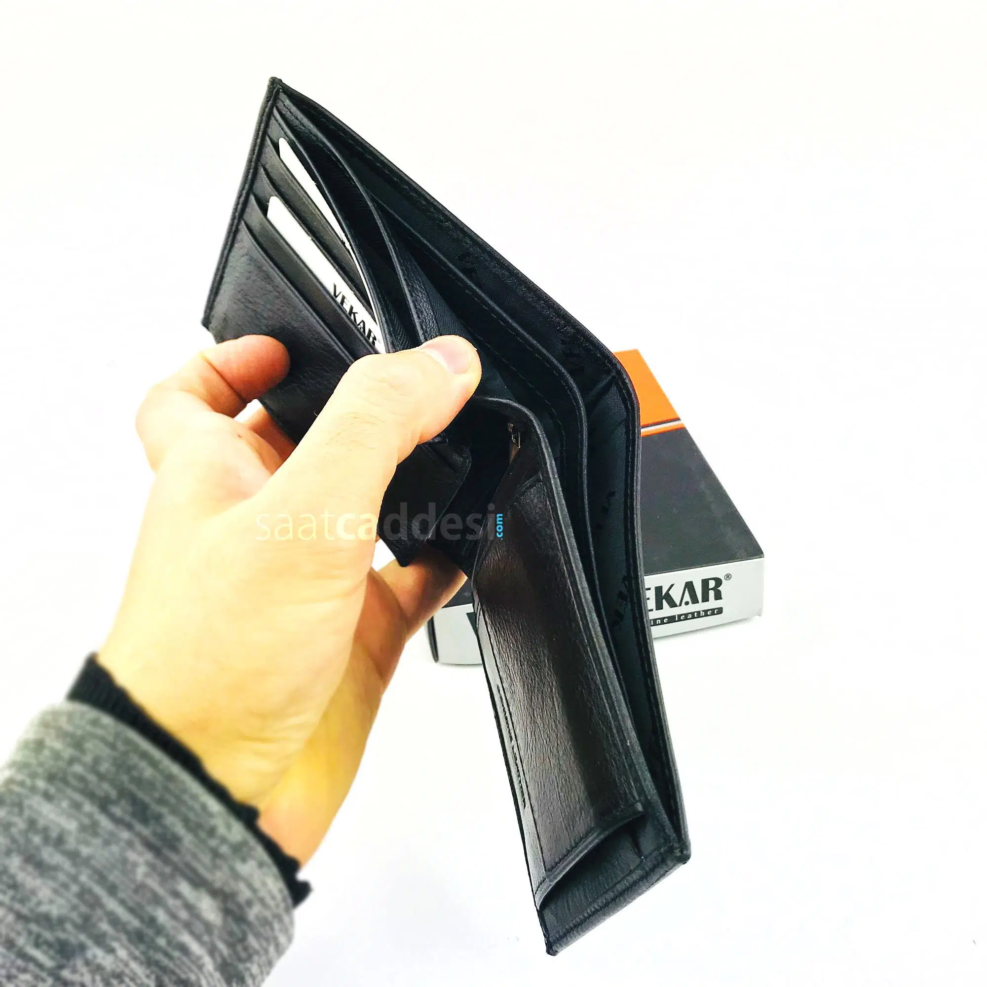 Vekar markasına ait %100 deri erkek cüzdanıdır.