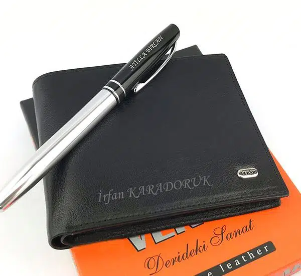 Cüzdan üzerine lazer işlemesi yapılmaktadır yazılar silinmez.