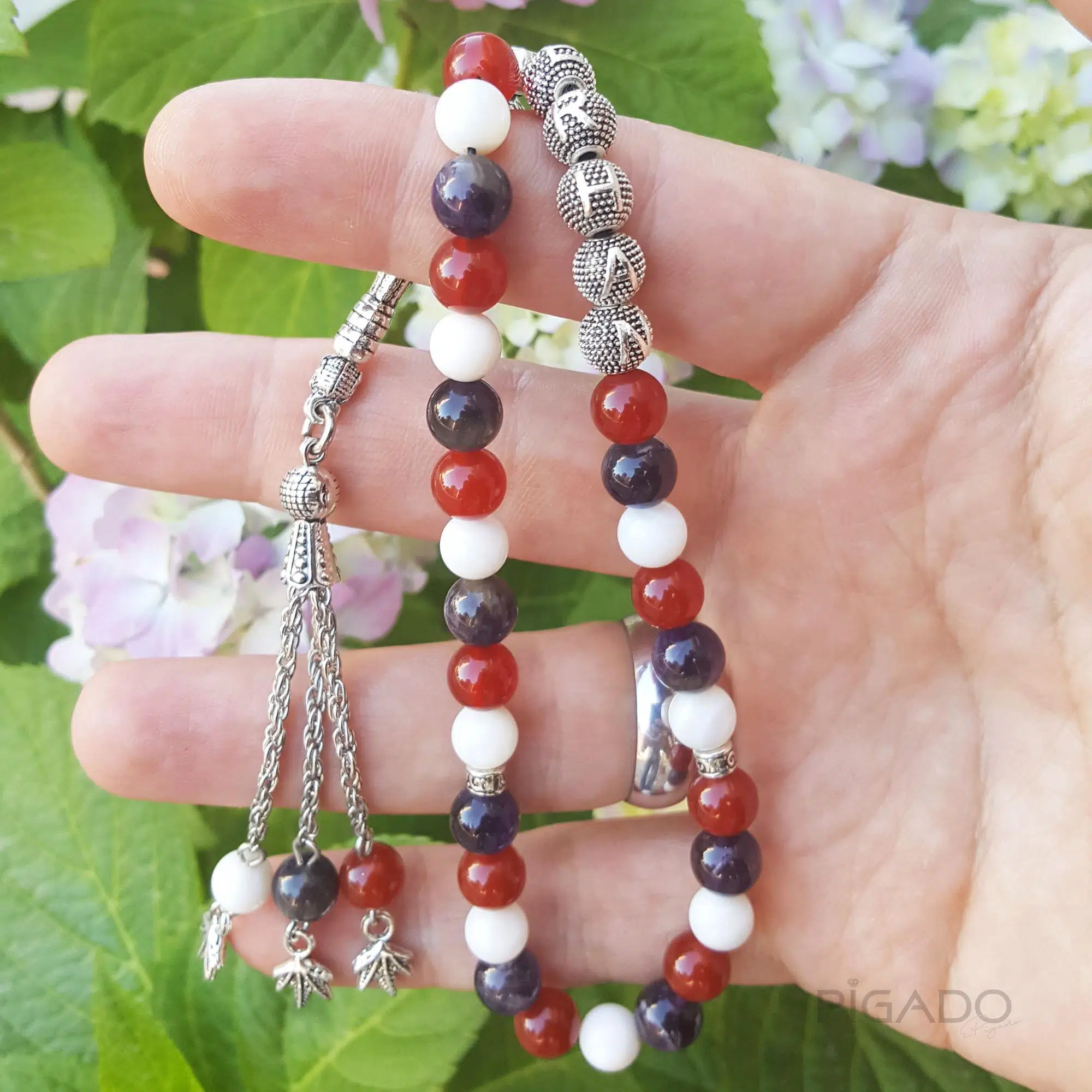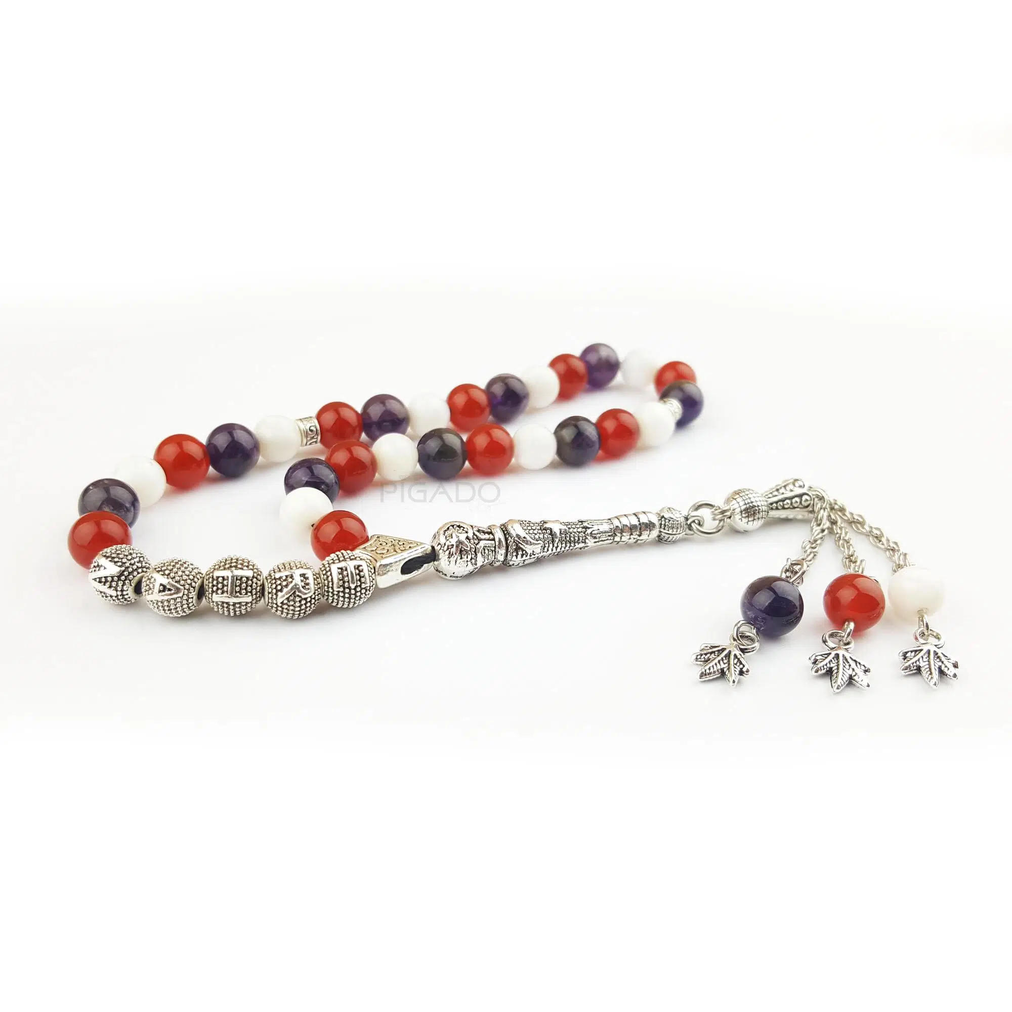 | Etiketler | İsme Özel Sedef Ametist Akik Üç Renk Doğaltaş Tesbih |