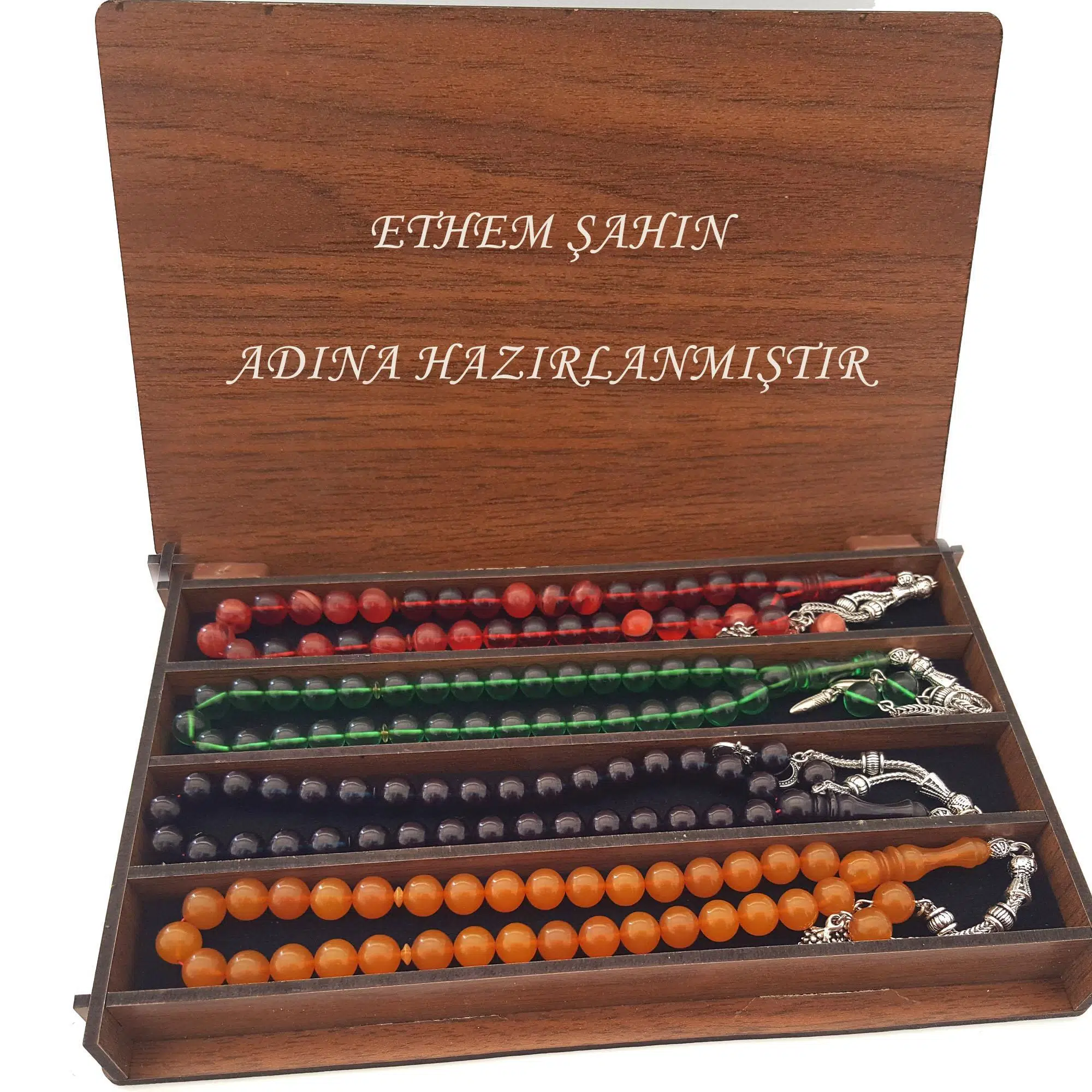 | Etiketler | İsmli Kutusunda 4 Adet Sıkma Kehribar Efsane Renkler Tesbih Set |