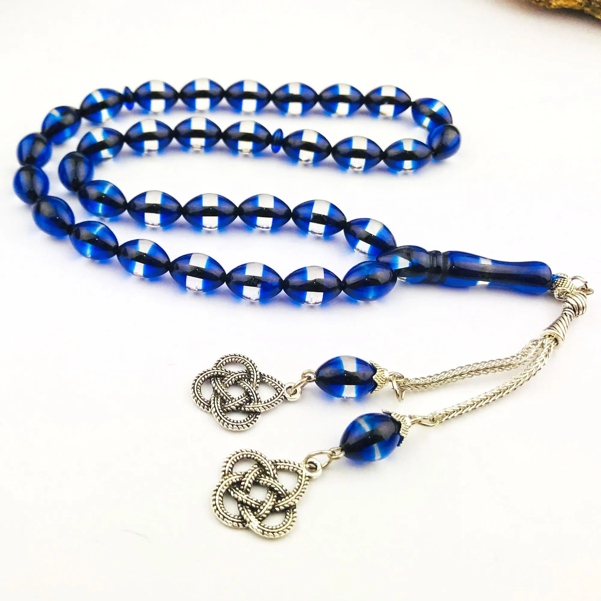 | Etiketler | Kazaz Püsküllü Arpa Kesim Mavi Sürmeli Kehribar Benzetmesi Tesbih |