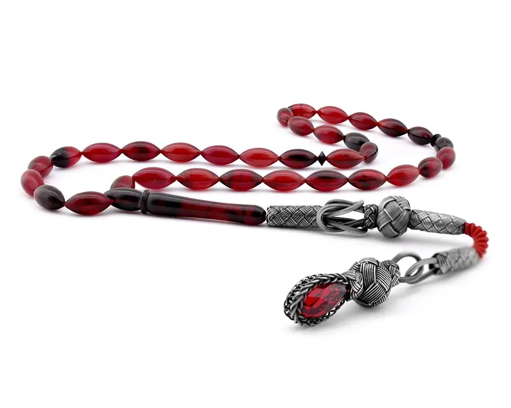 | Etiketler | Kazaziye Püsküllü Hareli Kırmızı Sıkma Kehribar Tesbih |