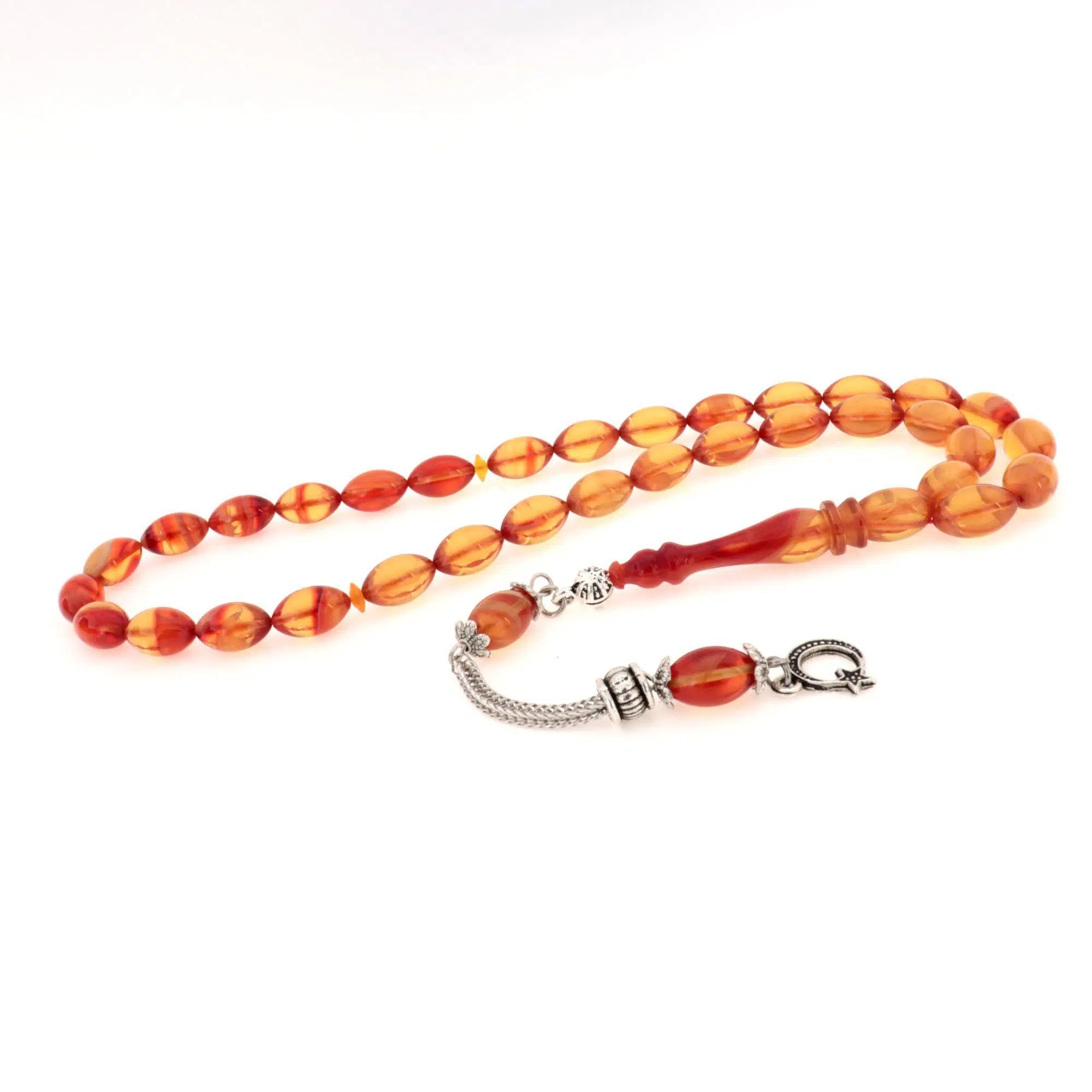 | Etiketler | Metal Ayyıldız Püsküllü Arpa Kesim Ateş Kehribar Tesbih |