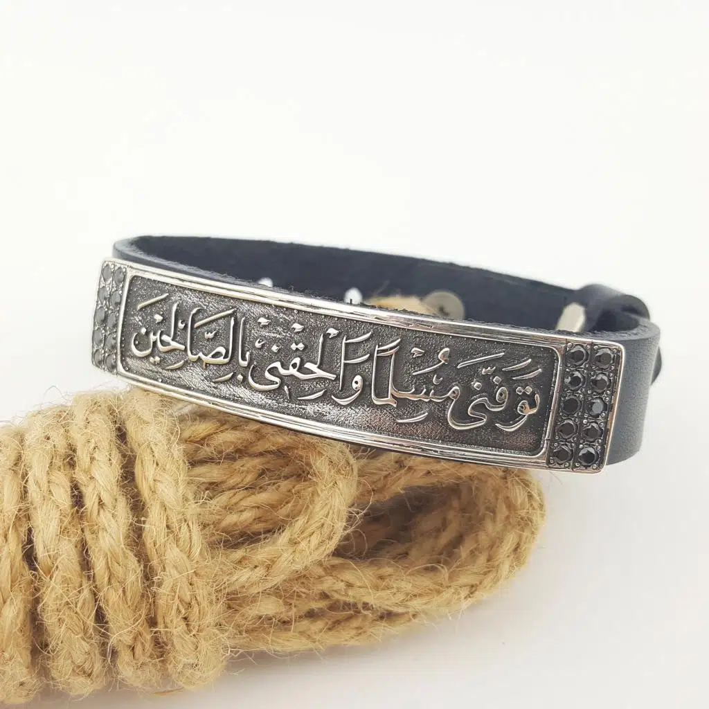 "Teveffeni müslimen ve elhikni bissalihin" (Allah'ım beni müslüman olarak öldür ve beni salihlerle birlikte haşret) nesih hat sanatıyla yazılıdır