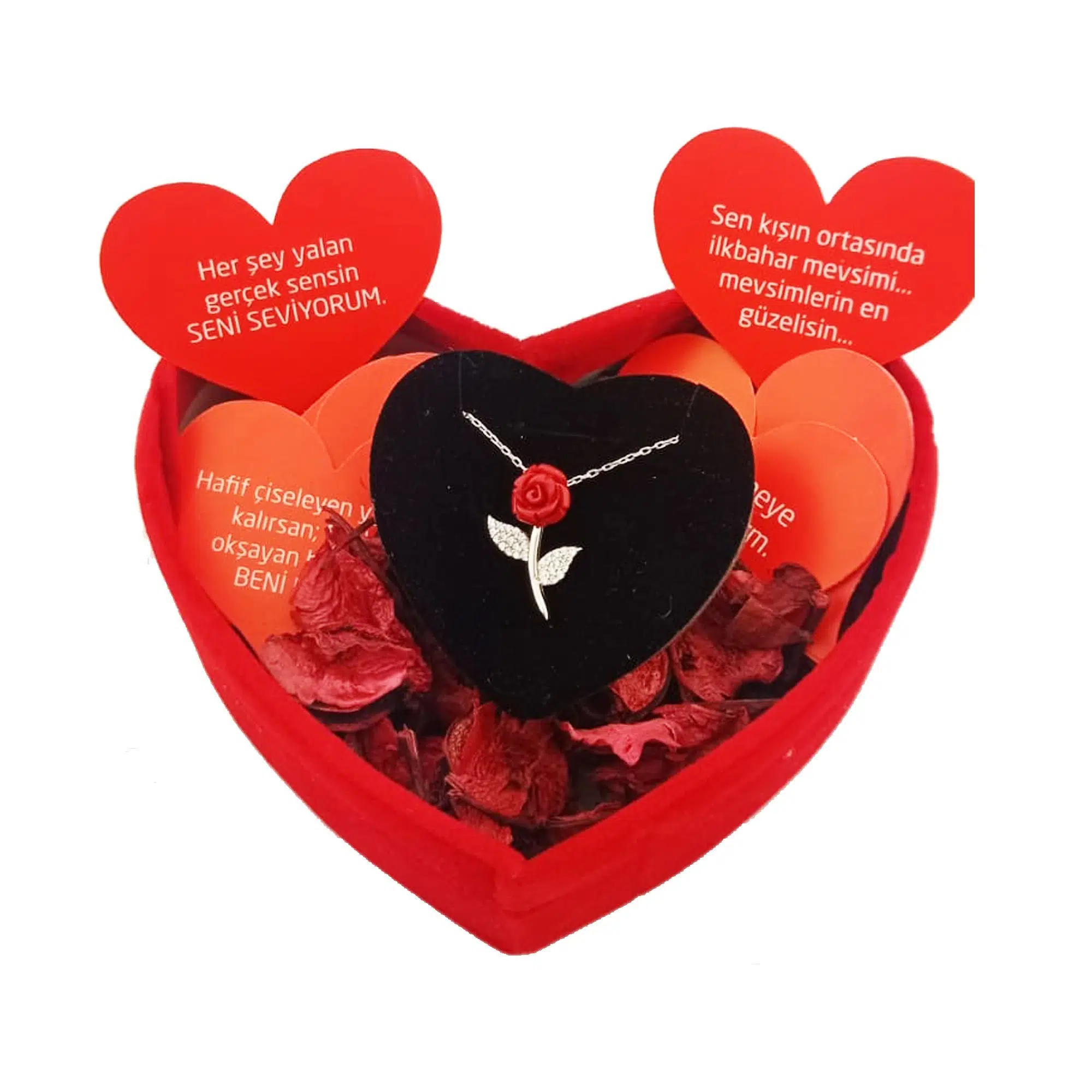 | Etiketler | Pigado 925 Ayar Gümüş Kalpli Özel Kadife Kutusunda Gül Kolye |