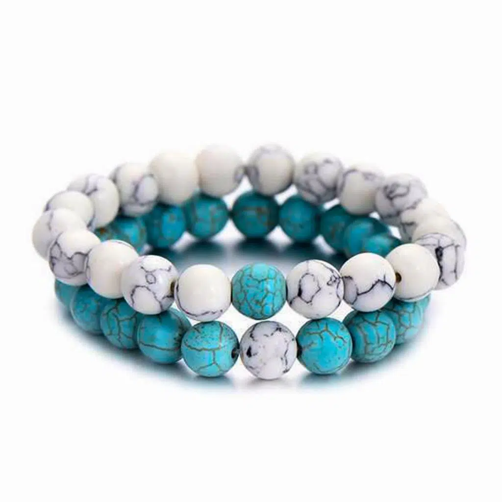 | Etiketler | Turkuaz Renkli Doğaltaş ve Havlit Doğal Taş Bileklik Seti Unisex |